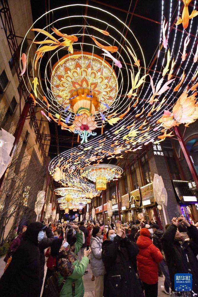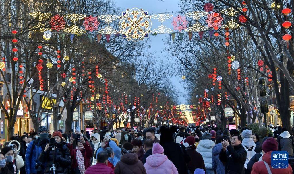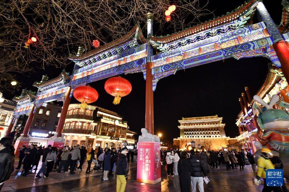 春节将至,北京前门步行街及周边商圈张灯结彩,吸引大批游人和市民前来赏灯、购物。