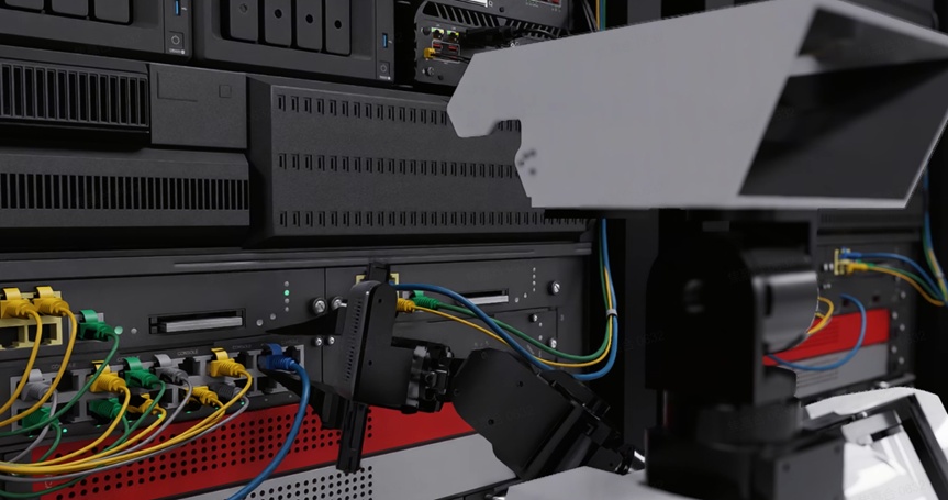 (机器人在光轮智能仿真环境中插拔网线)
