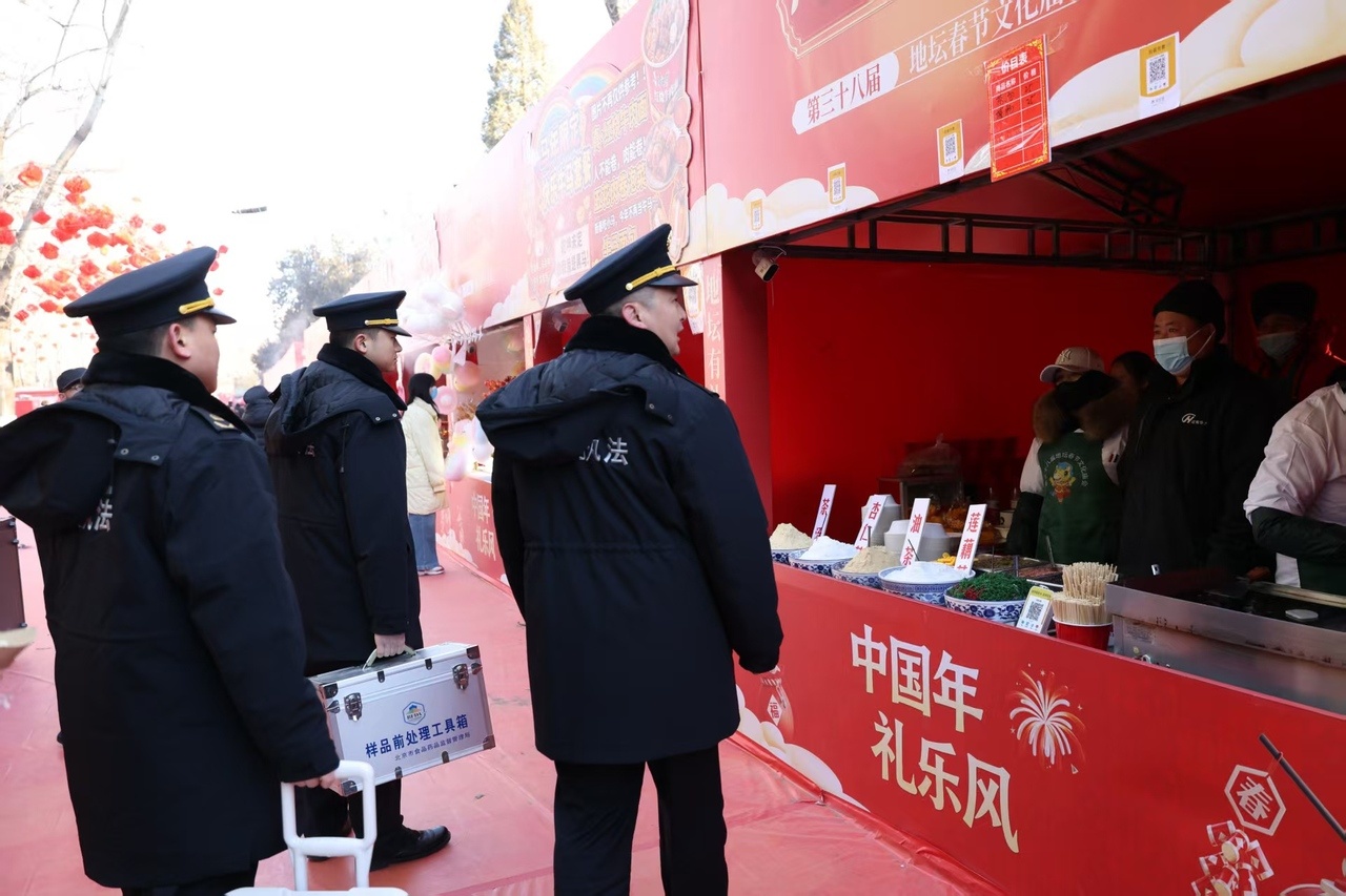 庙会上的游客也切身感受到了这份“安心”。带着家人前来打卡的市民王女士看着庙会中来回巡查的市场监管人员表示,“逛庙会最在意的就是吃得安全,虽然春节放假,但是监管人员全程在岗、细致检查,还做现场检测,我们买东西也更放心了,真心为他们点赞!”