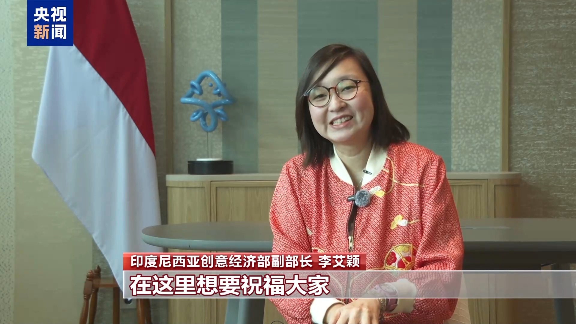 印度尼西亚创意经济部副部长 李艾颖:在这里想要祝福大家身体健康、步步高升、财源广进。在这跟你们说一声新年快乐,希望大家可以快快乐乐、开开心心。