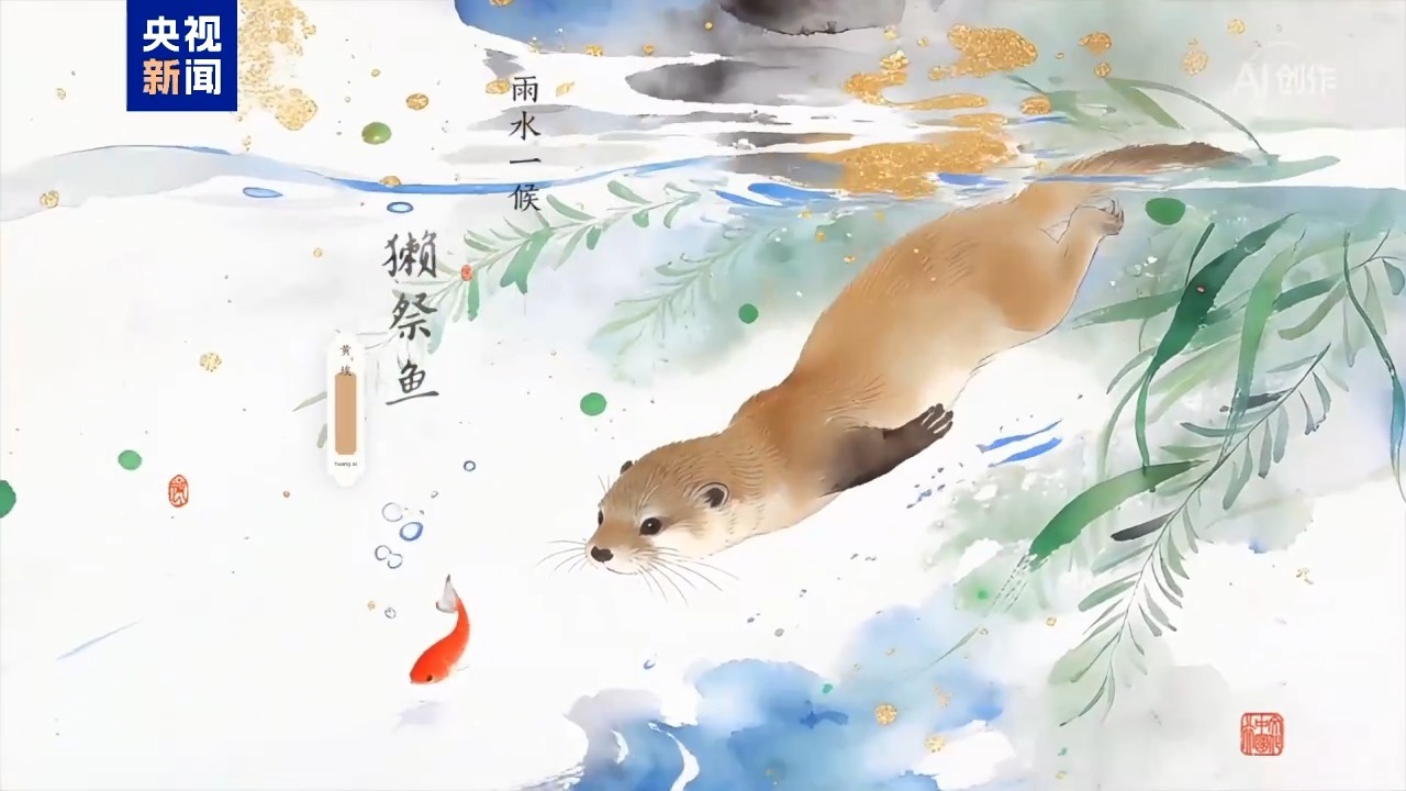獭祭鱼时,水獭衔鱼于岸边,爪印间的泥土晕染起黄埃之色,那是河畔初融的暖装,悄然吐纳生机。