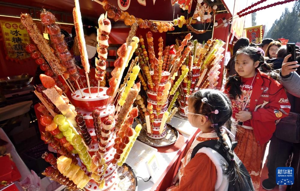 2月17日,市民在北京地坛春节文化庙会上买糖葫芦。新华社记者 李欣 摄