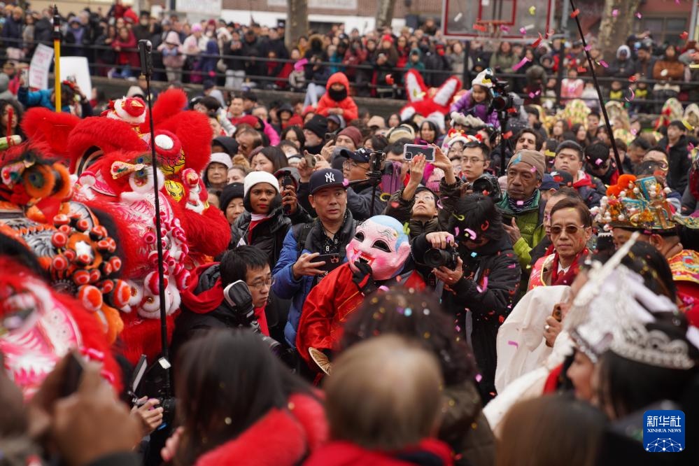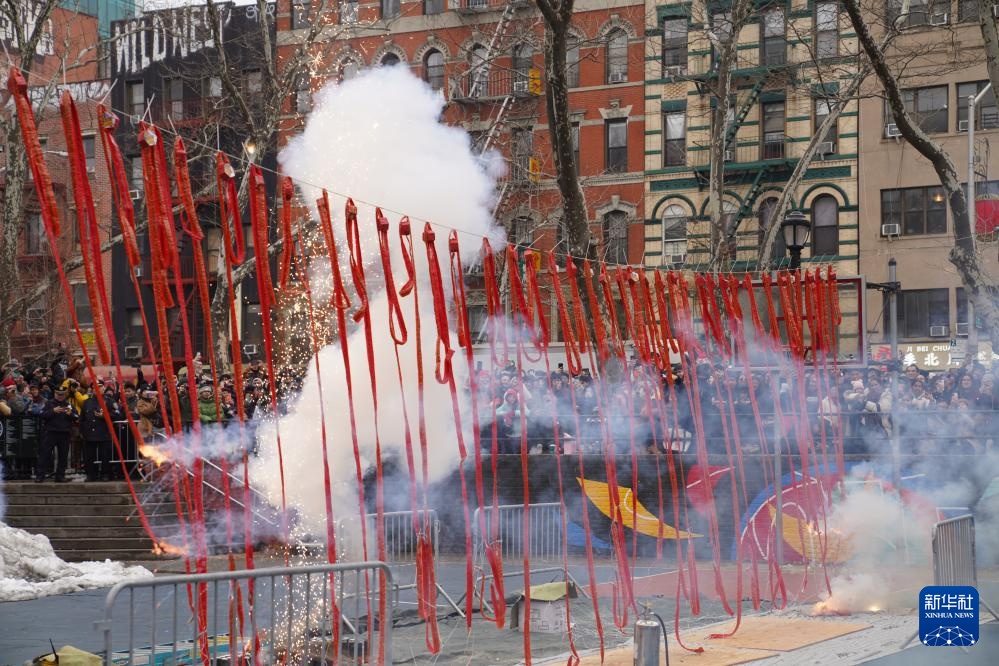 美国纽约中国城2月17日举行“新春炮竹文化庙会”,舞龙、舞狮、燃放炮竹等丰富的现场活动吸引数千人前来感受浓郁的中国年味。