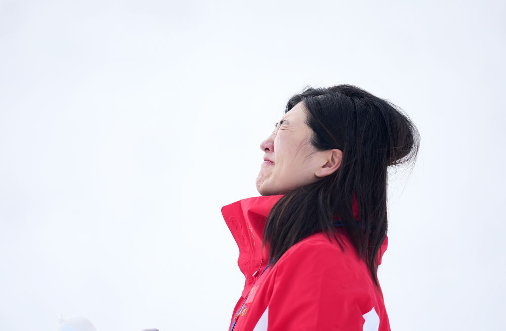 2月18日,中国选手徐梦桃在自由式滑雪女子空中技巧颁奖仪式上。新华社记者 胡超 摄
