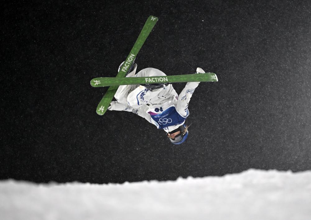 2月15日,新西兰选手哈林顿在自由式滑雪男子大跳台资格赛中。新华社记者 夏一方 摄