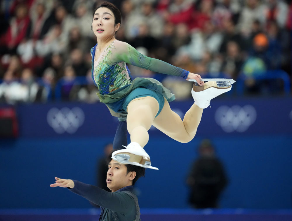 2月16日,中国选手隋文静(上)/韩聪在花样滑冰双人滑自由滑比赛中。新华社记者 薛宇舸 摄