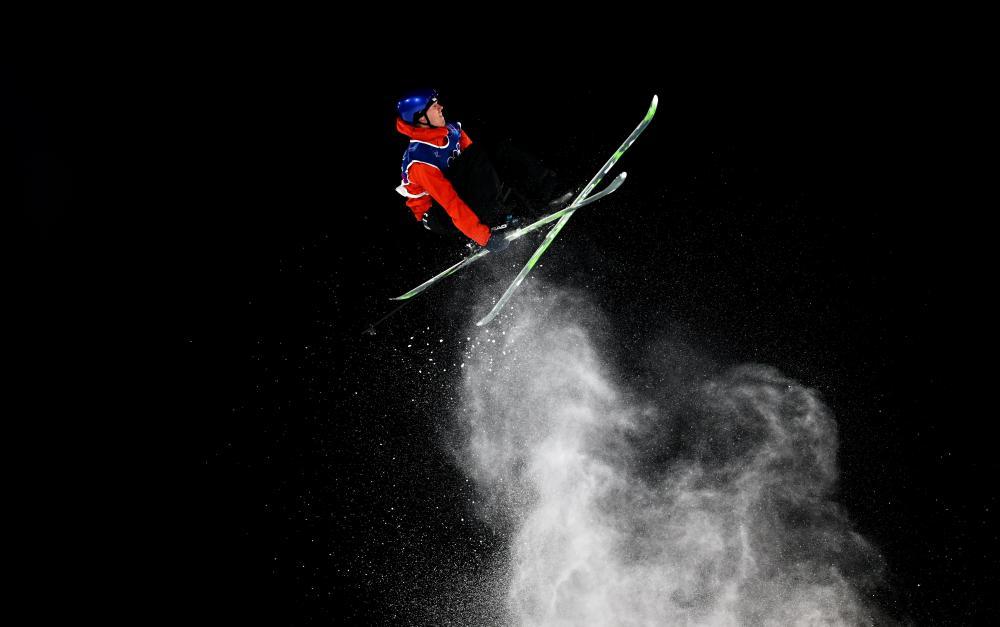2月15日,挪威选手萨姆诺伊在自由式滑雪男子大跳台资格赛中。新华社记者 张宏祥 摄