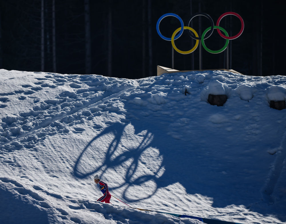 2月15日,挪威队选手克莱博在越野滑雪男子4X7.5公里接力比赛中。新华社记者 彭子洋 摄