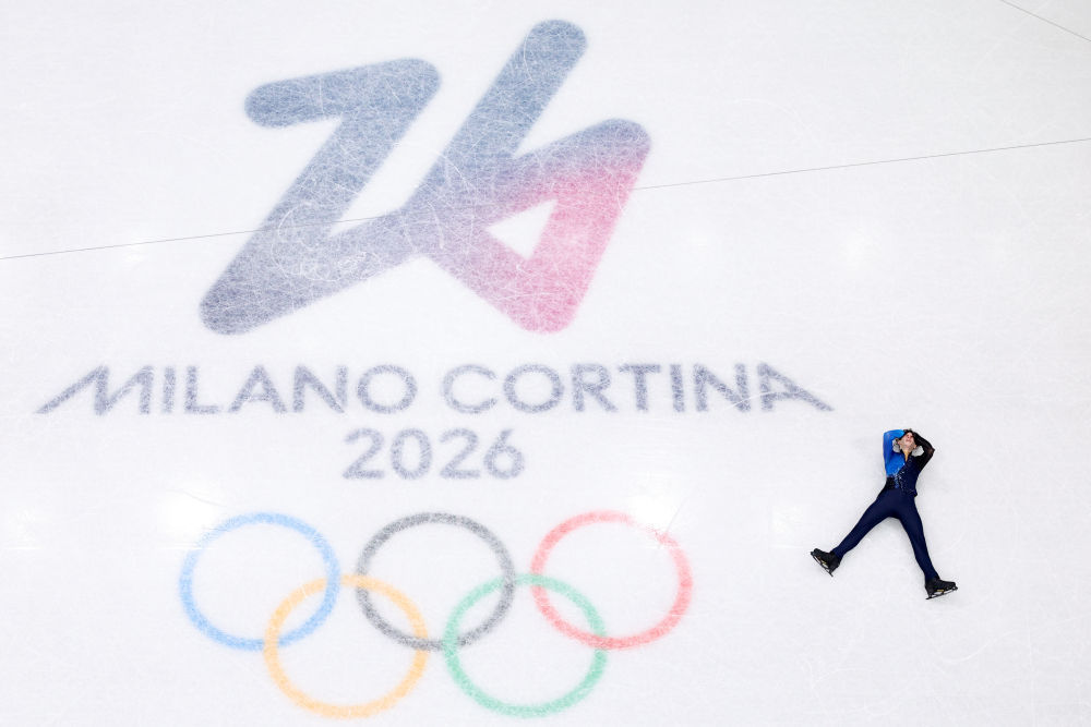 2月13日,萨多洛夫在花样滑冰男子单人滑自由滑比赛后庆祝。新华社记者 陈益宸 摄
