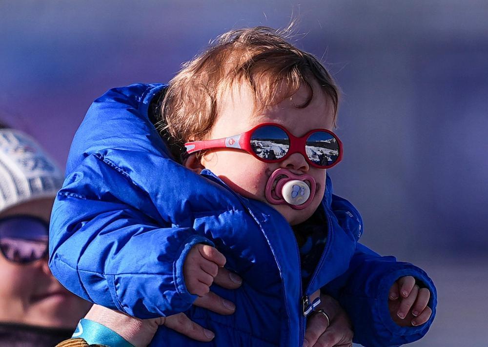 2月13日,一名观众在观看单板滑雪女子障碍追逐比赛。新华社记者 邬惠我 摄