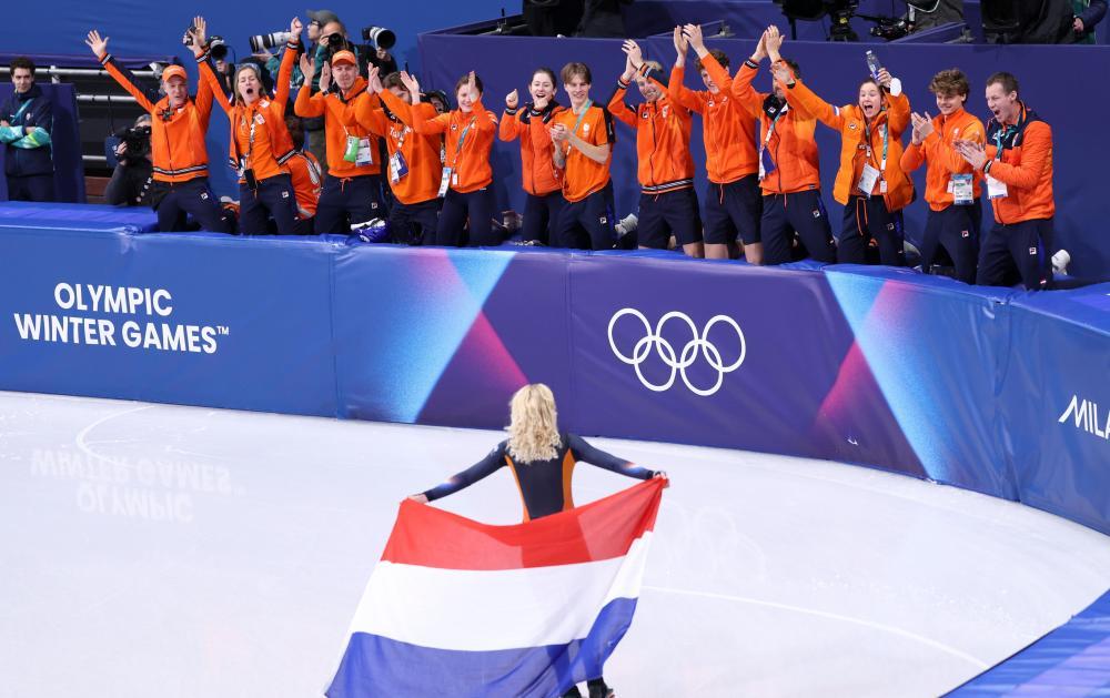 2月16日,荷兰选手桑德拉·贝尔塞伯(下)在短道速滑女子1000米决赛后庆祝夺冠。新华社记者 陈益宸 摄