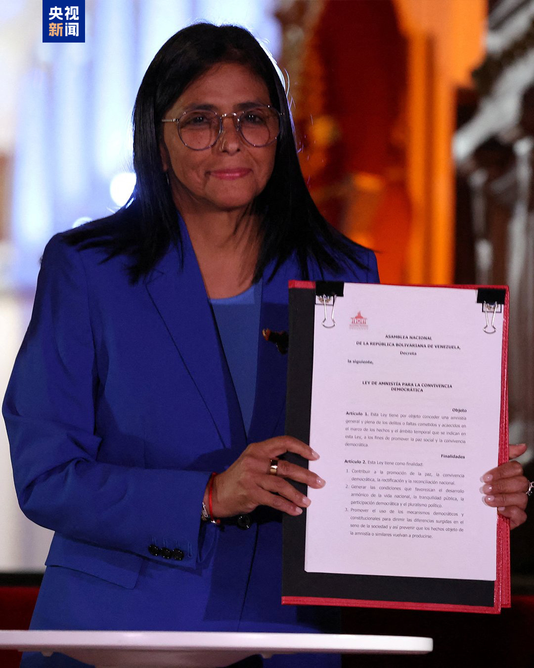 当地时间2月19日,委内瑞拉代总统罗德里格斯签署并颁发《民主共存大赦法案》。