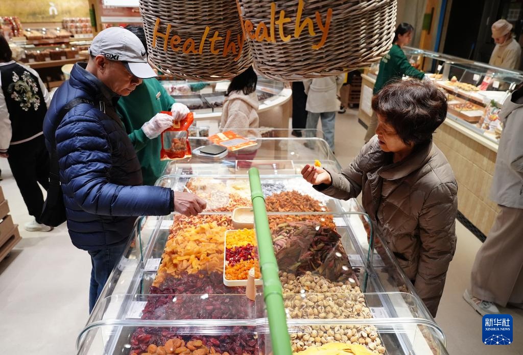 2月17日,游客在西安万象城一家食品店内选购果干。新华社记者 邵瑞 摄