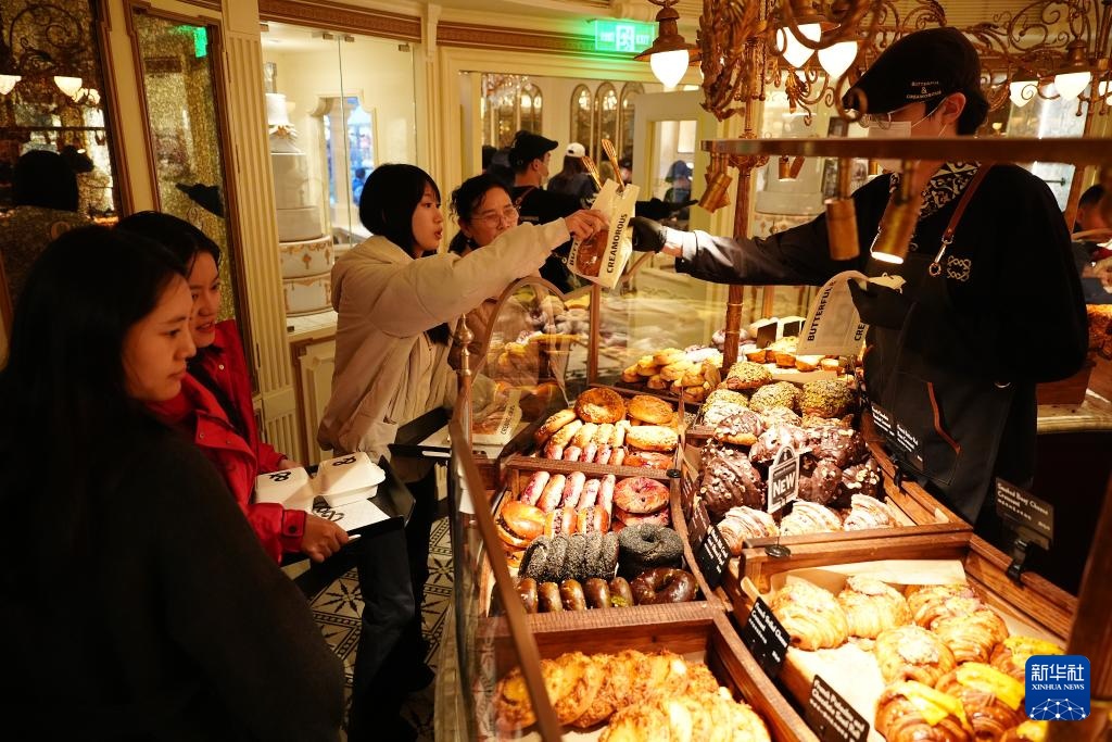 2月17日,游客在西安万象城一家烘焙店内选购。新华社记者 邵瑞 摄