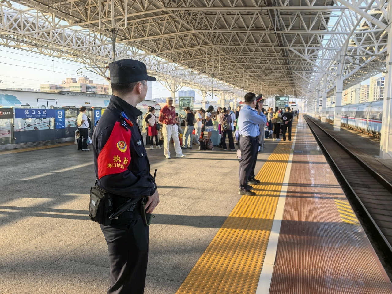 春运仍在继续,海口东站派出所全体民警将以更高标准、更实举措,持续守护海口东站、美兰站的平安与秩序,让广大旅客的出行之路更加安全、有序、温馨。(工人日报客户端记者 赖书闻 通讯员 张新新)