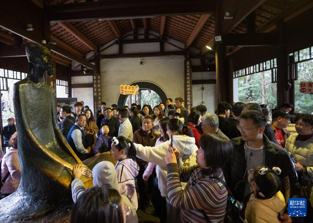 2月23日,众多游客来到杜甫草堂凭吊诗圣。新华社记者 江宏景 摄