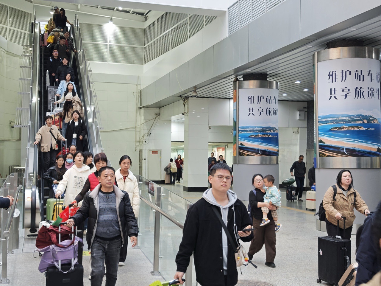 面对持续攀升的客流,广州站枢纽通过精细化管理和人性化服务,运输组织整体安全有序,展现出现代化综合交通枢纽的硬核实力与温情服务,使得广大旅客“走得好、走得舒心”。