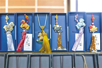 张小霞制作宋锦挂件。