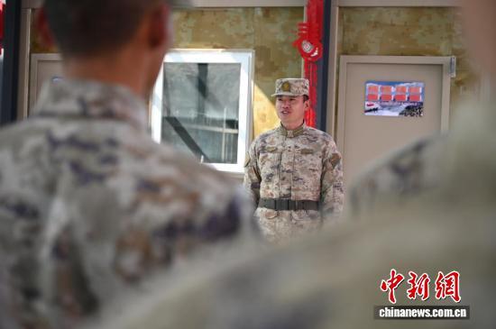 仁拉哨所干部王业廷布置迎接春节的任务。赵朗 摄