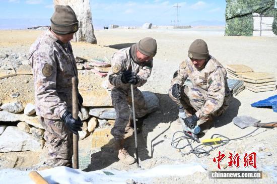 在5592哨所,战士们在维修台阶。赵朗 摄