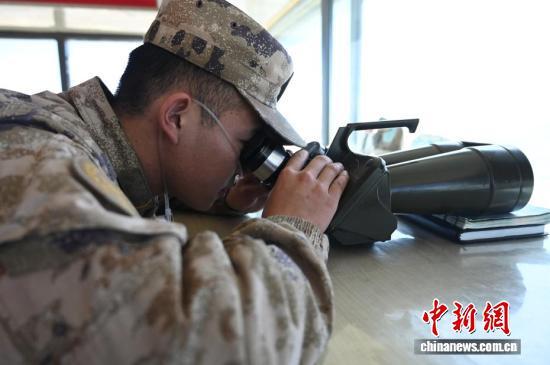 在查果拉哨所,战士吸着氧气执行观察任务。赵朗 摄