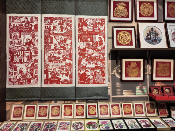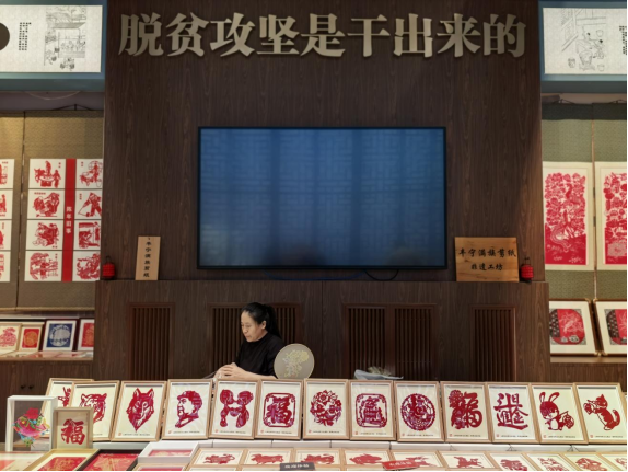 这是中国工艺美术馆里的丰宁满族剪纸非遗工坊。新华网记者 唐斓 摄