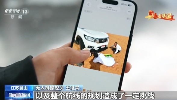 无人机操控员 王继昊:这是我们中国制造的eVTOL的航空器在境外进行一个飞行演示,这次的场景是一个典型的沙漠地区,那么地面和空中的高温天气,对我们航空器的性能以及整个航线的规划造成了一定挑战。我们航空器落地之后,有的人站立起来鼓掌甚至竖大拇指,一方面代表着我们国内的制造能力,以及中国低空经济发展的面貌;另一方面作为执行团队,我们完美地执行了这次演示任务,感到非常激动。