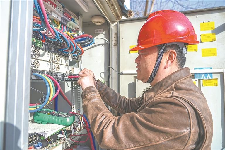 2月27日,陈西宁在维护基站。宁夏日报记者 李宏亮 摄
