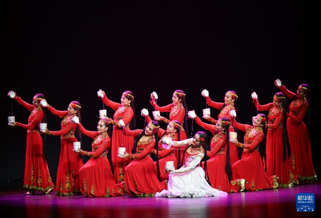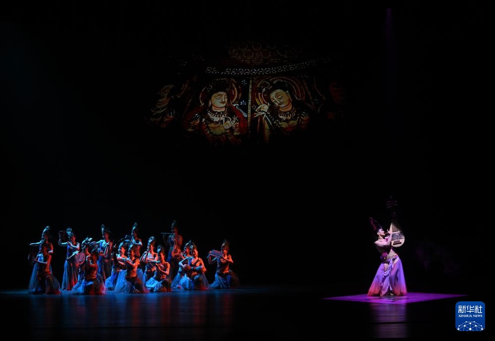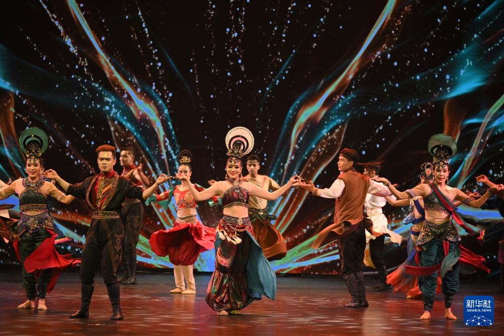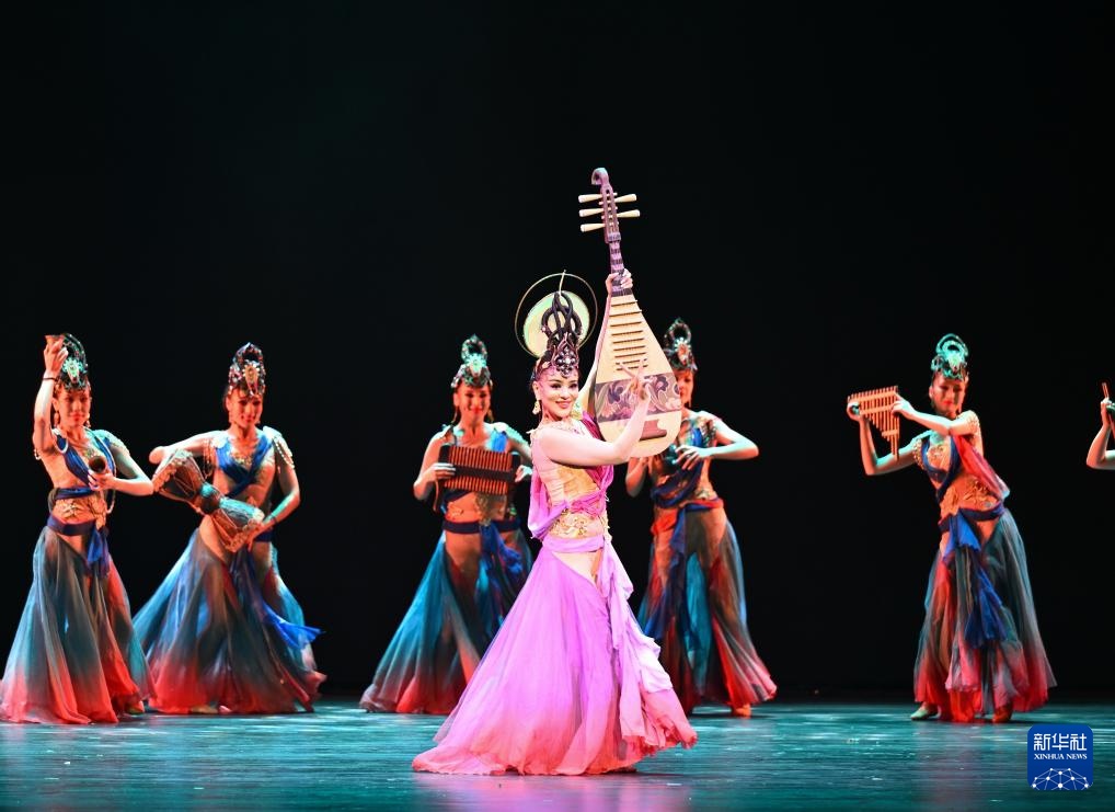 2月28日,演员在大型乐舞诗《杏花之约·丝路龟兹》中表演。新华社记者 李响 摄