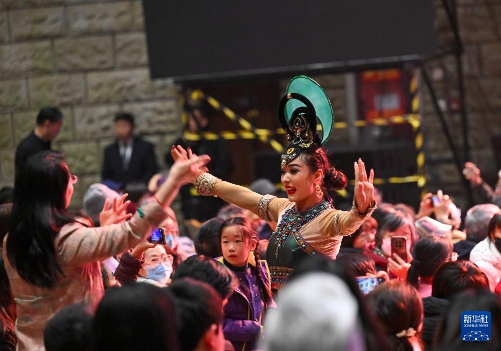 2月28日,演员在大型乐舞诗《杏花之约·丝路龟兹》中表演。新华社记者 金良快 摄