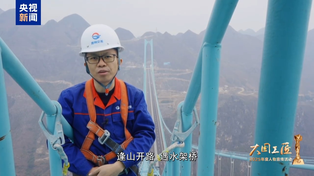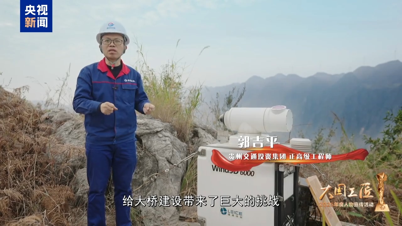 2025年大国工匠年度人物 贵州交通投资集团正高级工程师 郭吉平:世界排名前100的高桥中间,我本人参与建设的就有8座。从来没有遇到过像花江峡谷大桥上这么大的风。在桥面上,突然就来了六级以上的风。给大桥建设带来了巨大的挑战。