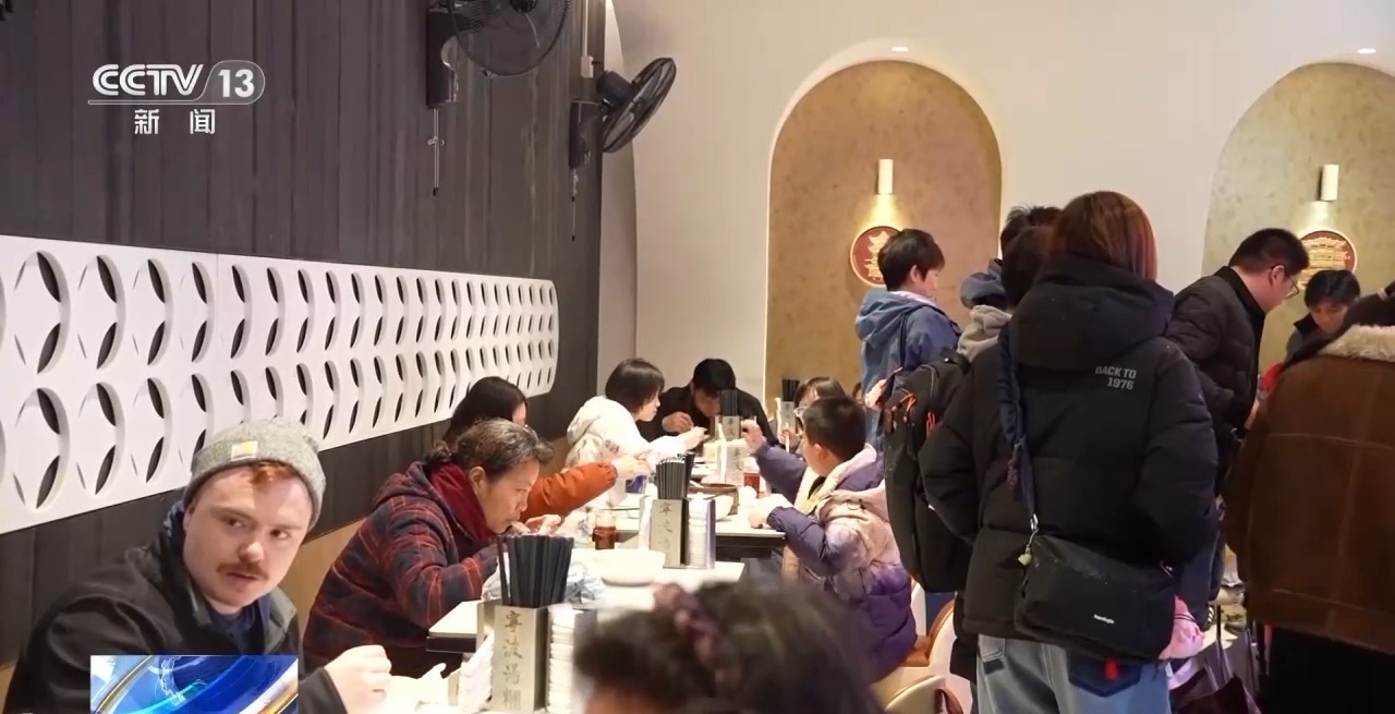 除了赏灯、做灯,吃汤圆也必不可少。在这家老字号餐饮店,市民游客人手一碗汤圆,店内座无虚席。