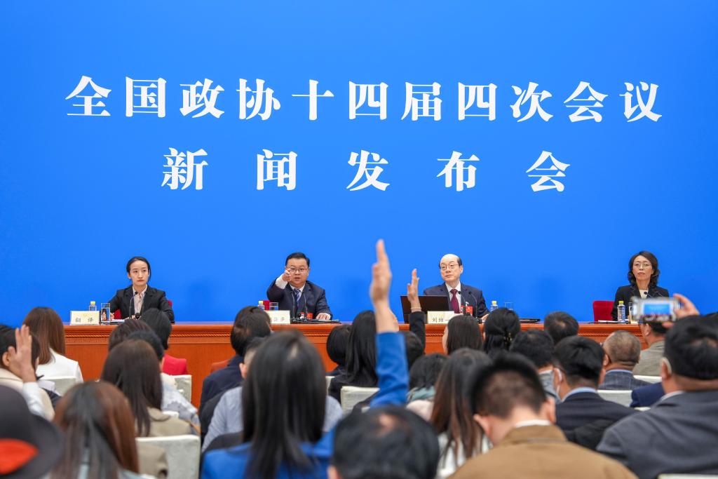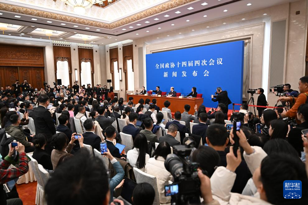 3月3日,全国政协十四届四次会议新闻发布会在北京人民大会堂举行。大会新闻发言人刘结一向中外媒体介绍本次大会有关情况并回答记者提问。新华社记者 陈晔华 摄
