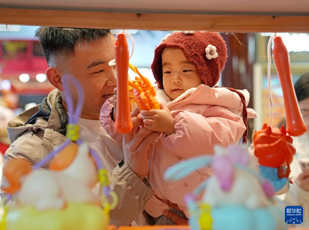 3月2日,游客带着小朋友在豫园商城选购手提花灯。新华社记者 刘颖 摄