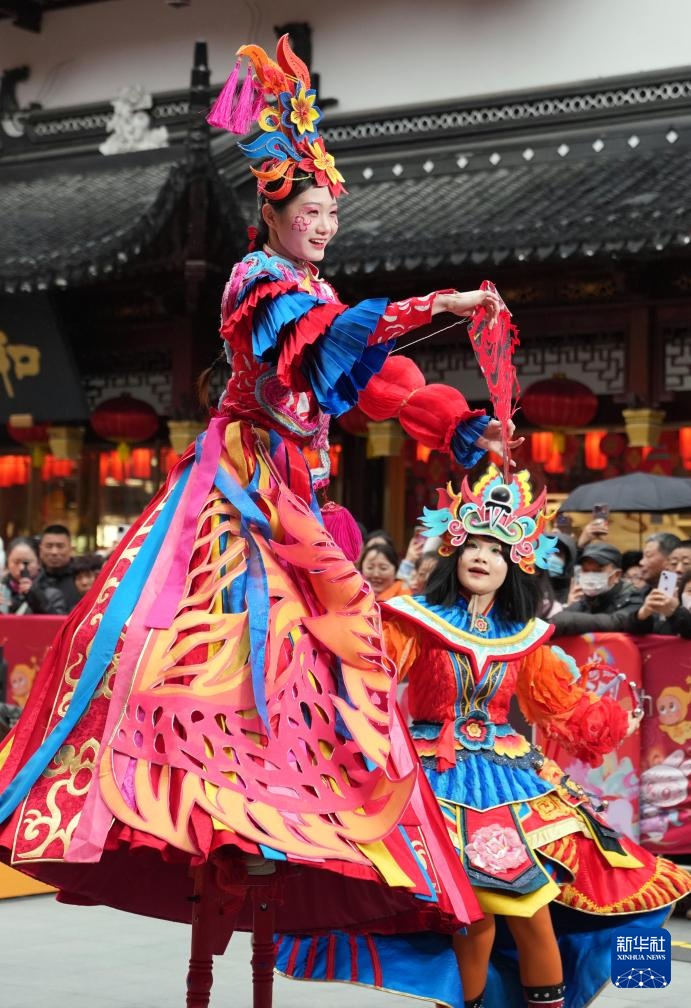 这是3月2日在豫园商城拍摄的民俗文化演出现场。新华社记者 刘颖 摄