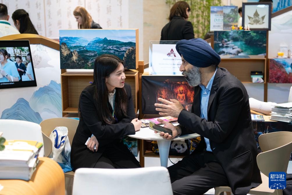 3月3日,在德国首都柏林,人们在2026柏林国际旅游交易会中国展区洽谈。新华社记者 张豪夫 摄