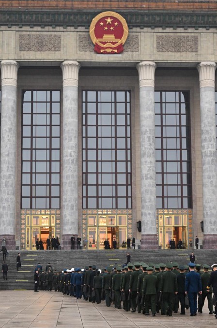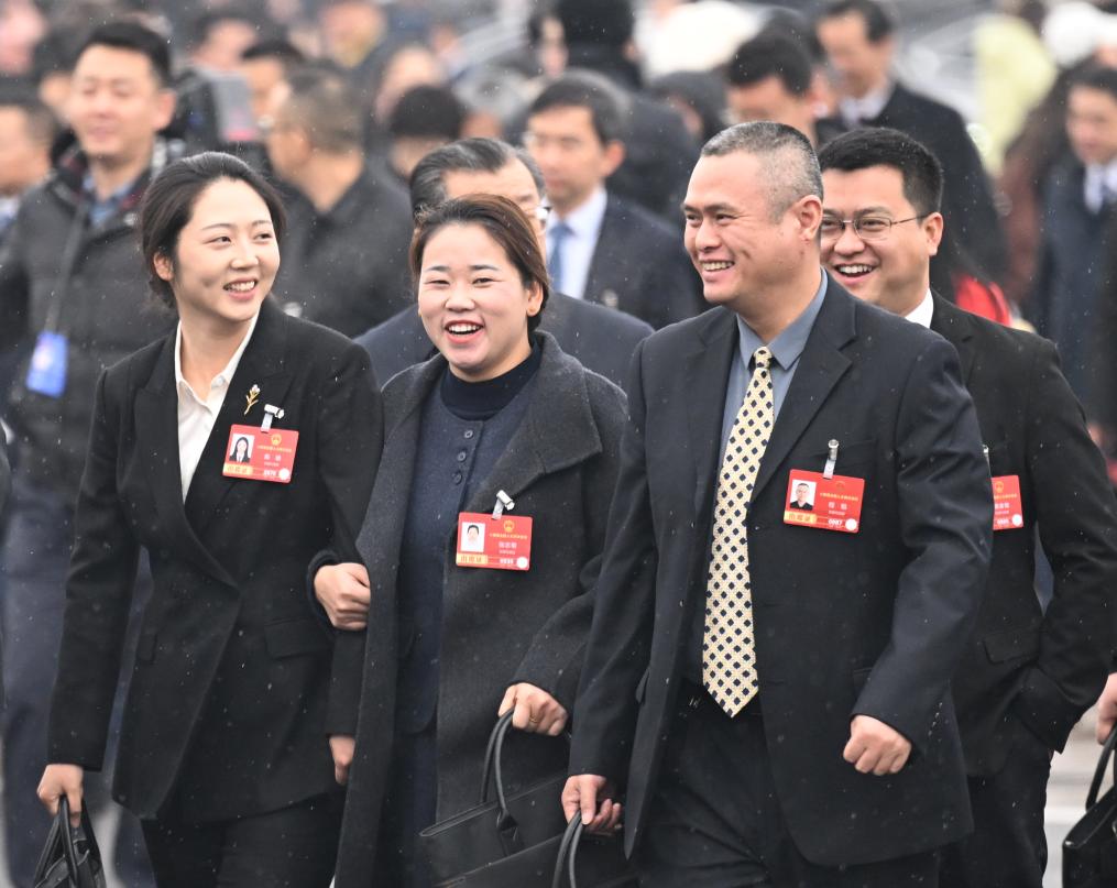 3月5日上午,第十四届全国人民代表大会第四次会议在北京人民大会堂开幕。这是全国人大代表走向会场。新华社记者 程婷婷 摄