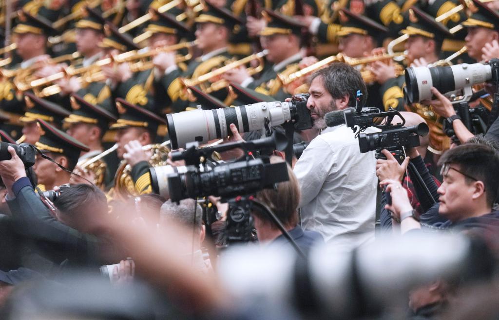 3月5日上午,第十四届全国人民代表大会第四次会议在北京人民大会堂开幕。这是记者在会场采访。新华社记者 王曦 摄