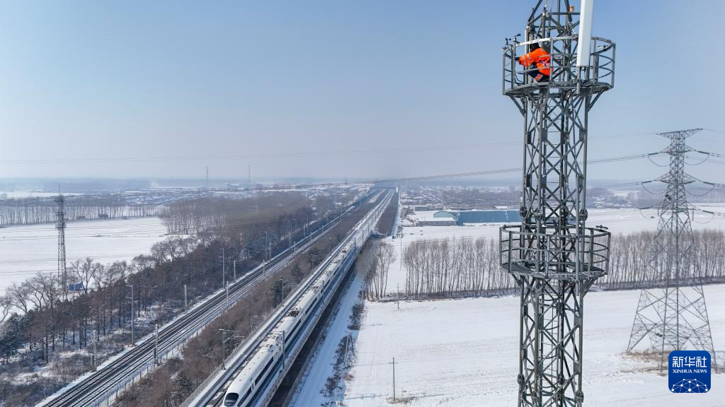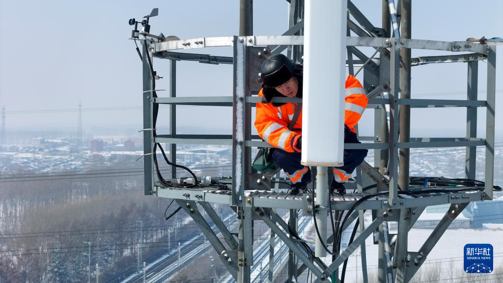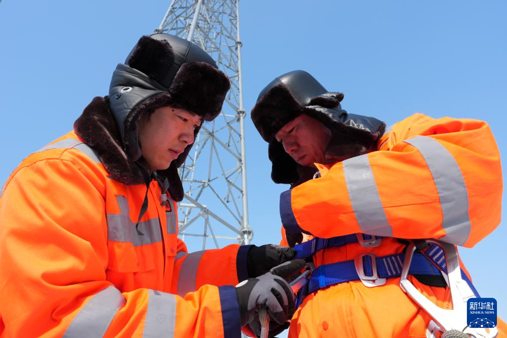 铁路通信基站铁塔是列车与车站调度的联系通道。春运期间,列车开行密度增大,同属中国铁路哈尔滨局集团有限公司哈尔滨通信段的通信工佟海涛与儿子佟泽龙结为作业小组,增加了对铁塔巡检的频次。他们每次都要攀爬45米高的铁塔,在低温下完成80分钟以上的户外高空作业,维护铁路通信畅通,确保动车组列车运行安全。