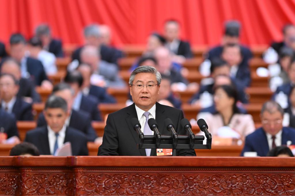 3月7日,全国政协十四届四次会议在北京人民大会堂举行第二次全体会议。这是解冬委员代表民建中央作题为《推动科技创新和产业创新深度融合 塑造高质量发展新动能》的发言。新华社记者 刘卫兵 摄