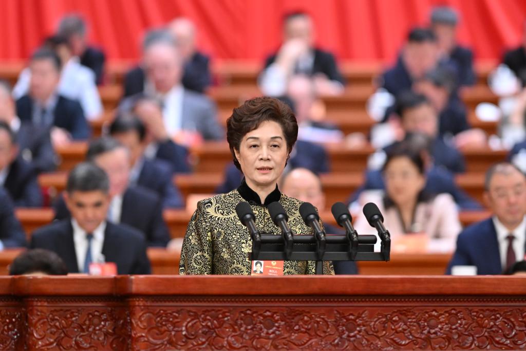 3月7日,全国政协十四届四次会议在北京人民大会堂举行第二次全体会议。这是贺丹委员作题为《优化生育支持政策和激励措施 构建积极生育保障体系》的发言。新华社记者 岳月伟 摄