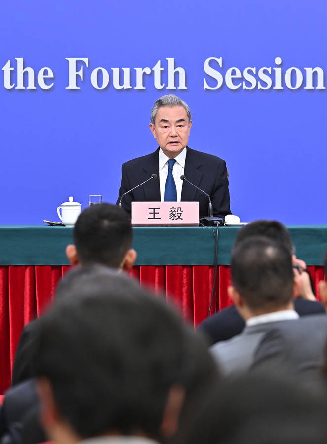 3月8日,十四届全国人大四次会议在北京梅地亚中心新闻发布厅举行记者会。中共中央政治局委员、外交部长王毅就“中国外交政策和对外关系”相关问题回答中外记者提问。新华社记者 傅天 摄