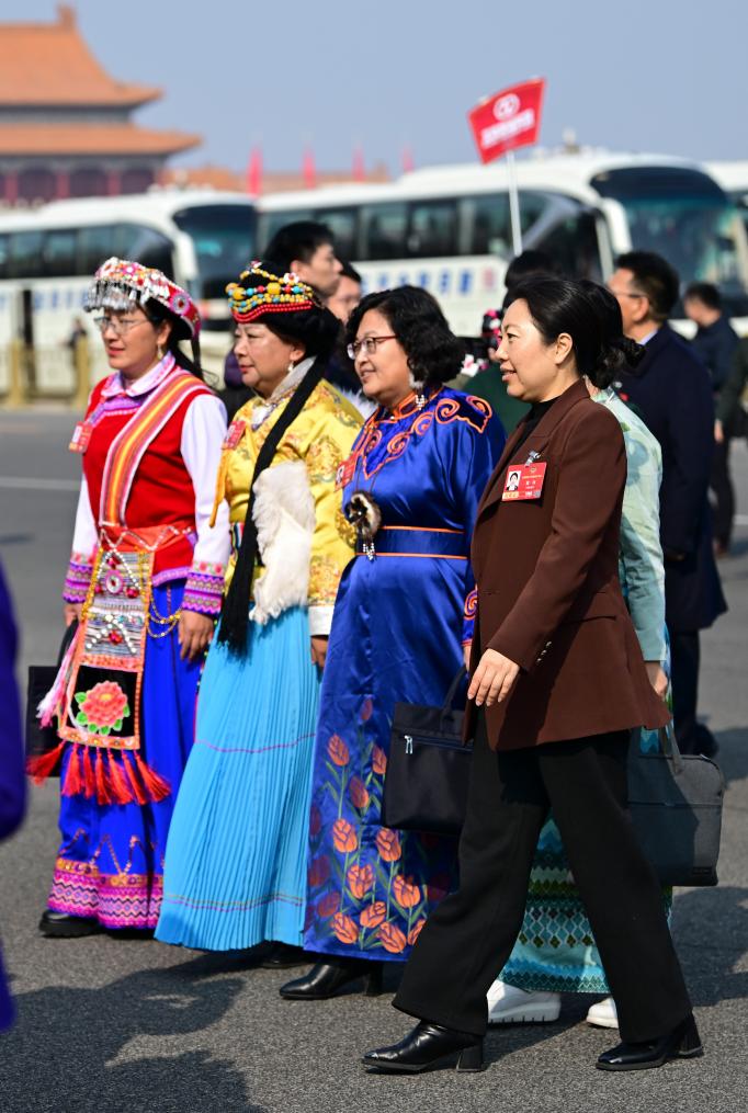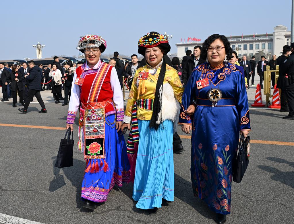 3月8日,全国政协十四届四次会议在北京人民大会堂举行第三次全体会议。这是全国政协委员走向会场。新华社记者 金良快 摄