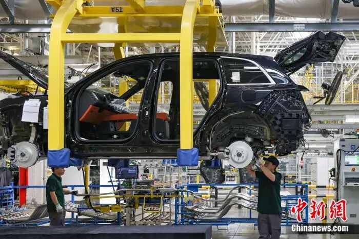 资料图:位于江苏常州的理想汽车智能制造基地生产车间内的忙碌景象。 中新社记者 泱波 摄