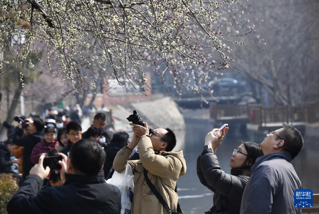 随着气温逐渐回升,北京市朝阳区二道沟河六里屯段的“山桃花溪”近百株山桃花已陆续绽放,吸引不少市民游客前来踏青赏花。