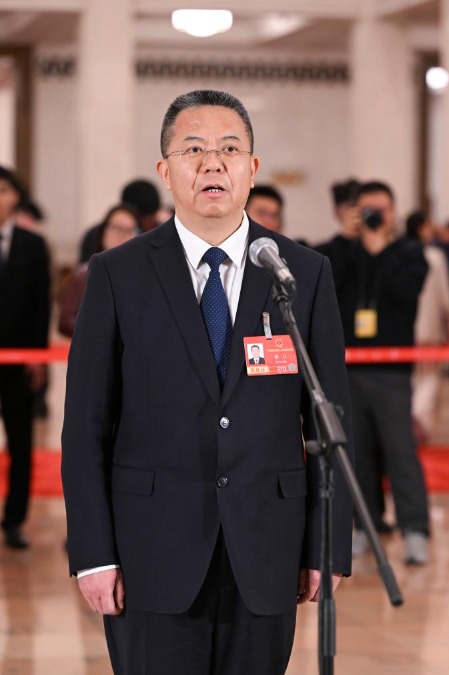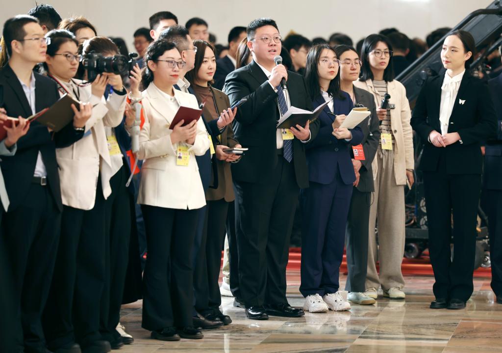 3月9日,第十四届全国人民代表大会第四次会议第二场“代表通道”集中采访活动在北京人民大会堂举行。新华社记者 傅天 摄