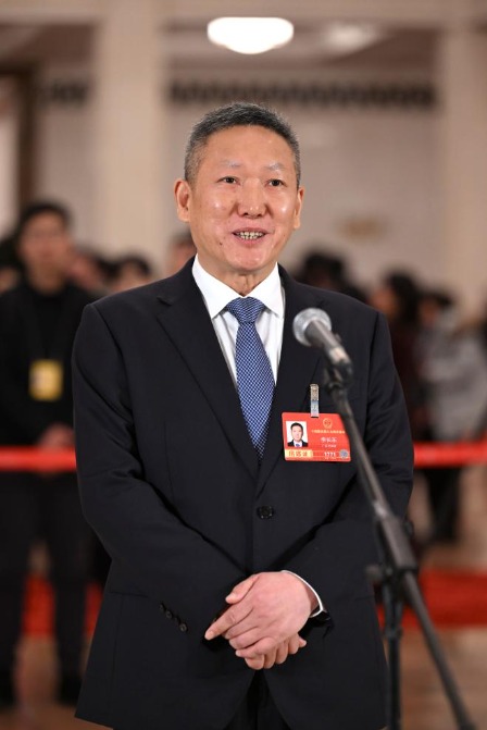 3月9日,第十四届全国人民代表大会第四次会议第二场“代表通道”集中采访活动在北京人民大会堂举行。这是全国人大代表李长东接受媒体采访。新华社记者 程婷婷 摄