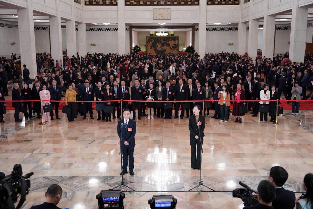 3月9日,第十四届全国人民代表大会第四次会议第二场“代表通道”集中采访活动在北京人民大会堂举行。新华社记者 金立旺 摄