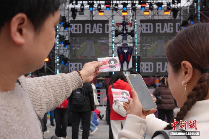 “寻找周冠宇”沉浸式主题展吸引不少车迷驻足。中新网记者 张亨伟 摄