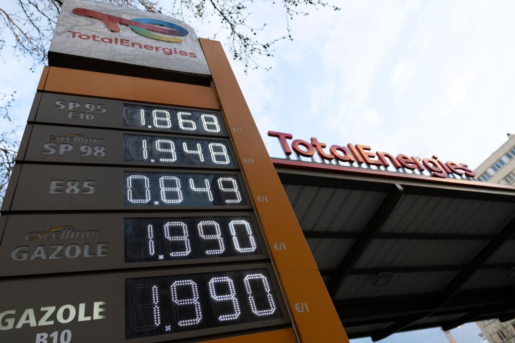 这是3月9日在法国巴黎拍摄的一座加油站的油价牌。美国和以色列对伊朗发动军事打击以来,法国加油站燃油价格明显上涨。新华社记者邬惠我摄